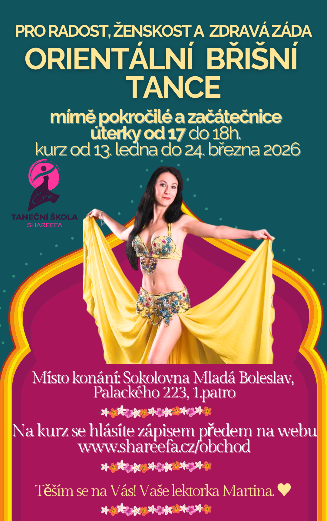 Přihlášením se na lekci (kurz,seminář) akceptujete podmínky TS Shareefa z.s. Mladá Boleslav, IČO 22889787, https://shareefa.cz/2025/11/nhrady-hodin-a-co-s-sebou-na-lekce/