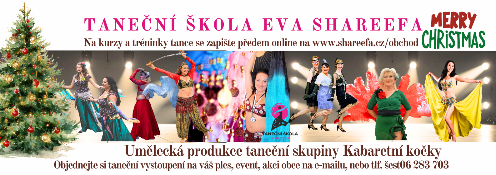 Orientální břišní tance, flamenco arabic, kabaret a bachata. Kurzy tance pro děvčata a ženy všech věkových (i váhových) kategorií. Tanec podpoří tvé sebevědomí a ladnost, zlepší koordinaci a rovnováhu, zpevňí ti střed těla. Uvolní napětí od stresu a pomáhá rozproudit lymfu. Umělecká produkce Kabaretní kočky a taneční škola Eva Shareefa nabízí profesionální taneční vystoupení, světelnou LED show na vaši akci, event, ples, akci města. Naše tance Kabaretní kočky Shareefa, kostýmy a choreografie, vytváří zážitky, které zůstávají dlouho v paměti.